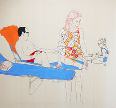 Véronique Decoster est peintre de formation, mais sa méthodologie a récemment évolué vers la broderie. Pour l'exposition, l'artiste présente deux ensembles d'œuvres. D'une part, ses peintures à l'huile de 20 x 20 cm occuperont un mur de la galerie dans une sorte de patchwork plus grand que nature. Alors que l'espace entre chaque tableau est tout aussi important que le tableau lui-même - comme les respirations entre les phrases, comme les pauses entre les pensées - l'iconographie délicate de chaque œuvre raconte une histoire plus vaste. Histoire collective d'instances flottantes, d'images fugaces, les œuvres de Decoster abordent la mémoire avec l'imperfection, l'évolution, l'instantanéité ou la lourdeur des souvenirs. Matérialisées, elles deviennent iconiques, symboliques. Comme les souvenirs d'une tasse de thé, le cliché d'un être cher, le chant d'un oiseau. De l'autre côté, ses broderies à grande échelle seront exposées pour la première fois. Tels des collages, les travaux brodés sur toile rassemblent la peinture et le fil, mais aussi un ensemble de motifs, de lignes, de silhouettes restituant des scènes fortes baignées de nostalgie.